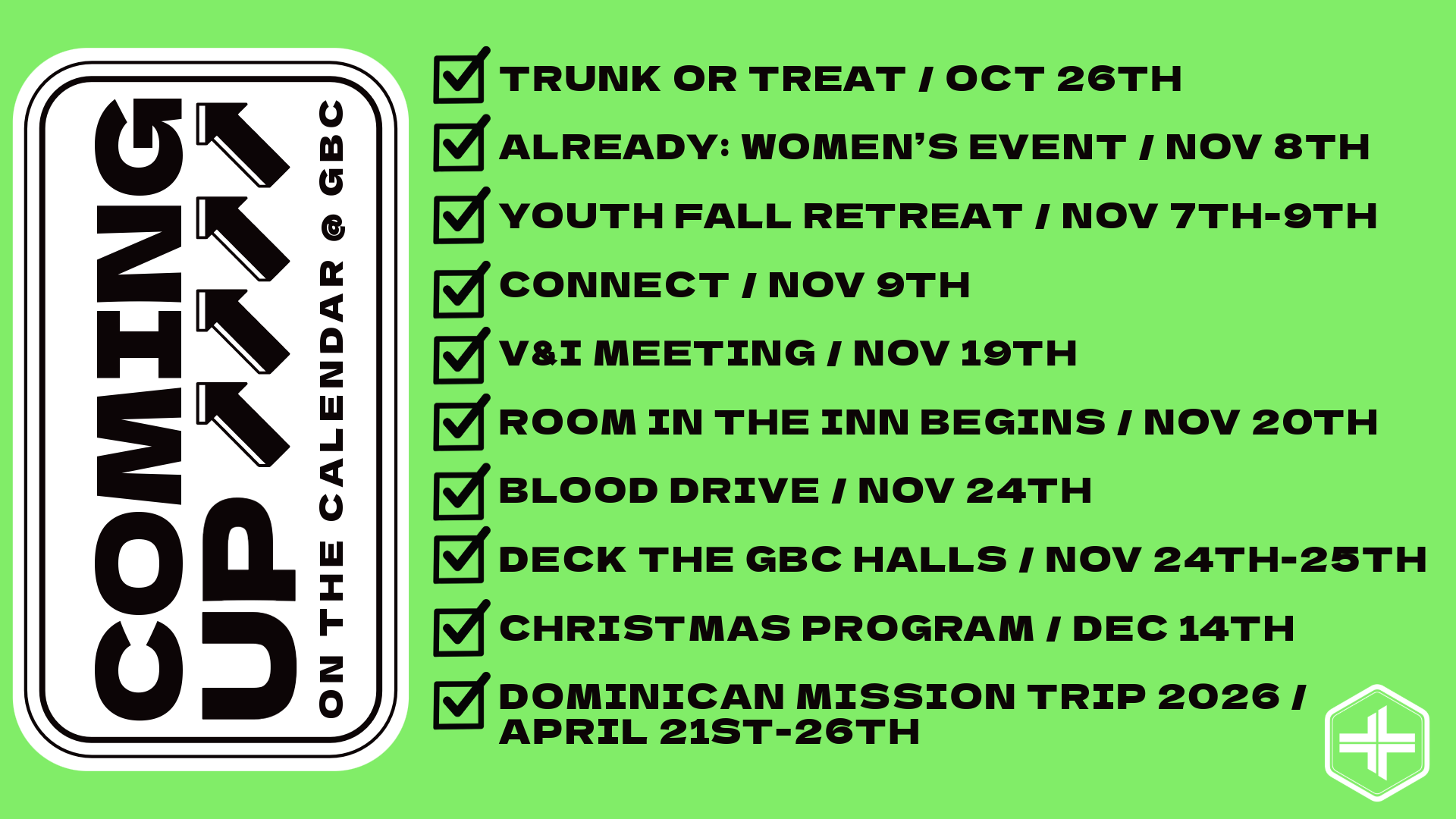 Don’t forget to check in on social media! When you check in at GBC and like/share our content you create visibility of what God is doing here. That visibility can change lives forever. A few simple clicks will bring people Face to Face with Jesus. Just click the link and select the icon of your preferred social media platform. This link can also take you to our YouTube channel, podcast, and any other links you may need!