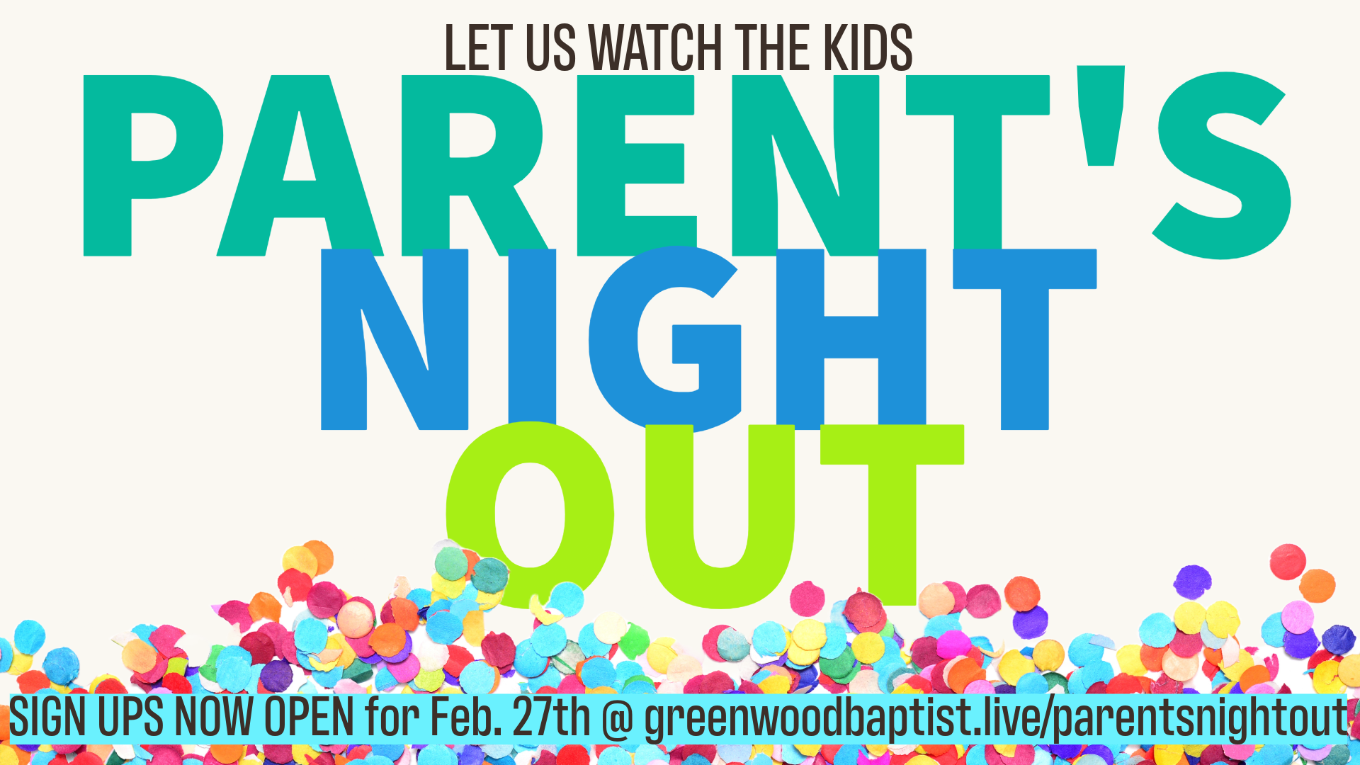 We want to watch your kids for you! Our next Parent’s Night Out for GBC Kidz/Middle School Youth is Feb 27th. Drop off is at 5:30 and pickup is at 8:00. Our team has all the fun planned, so send your kiddo in their Christmas jammies, ready to have a blast! We will even feed them dinner!